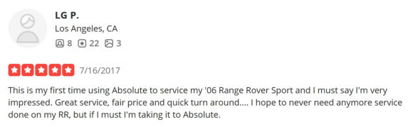 *Absolute Rover is not associated with, sponsored by, licensed by or somehow affiliated with Land Rover LTD.
